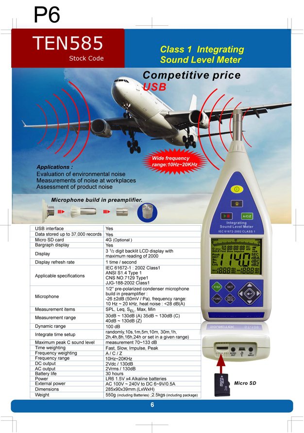 - IEC 61672-1 : 2002 Class1 - ANSI S1.4 Type 1 - CNS NO.7129 Type 1 - JJG-188-2002 Class1 |