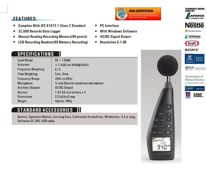Our advance sound level meter CEN0005 fully complies with IEC61672-1. This meter has only one measuring range and it is extending from 30db to 130db that is full 100db. The operator will not have to worry about which range to use like in the 3 or 4 range models and neither about signal latency in auto range models. This unit is also a data logger can be readout from unit or through PC