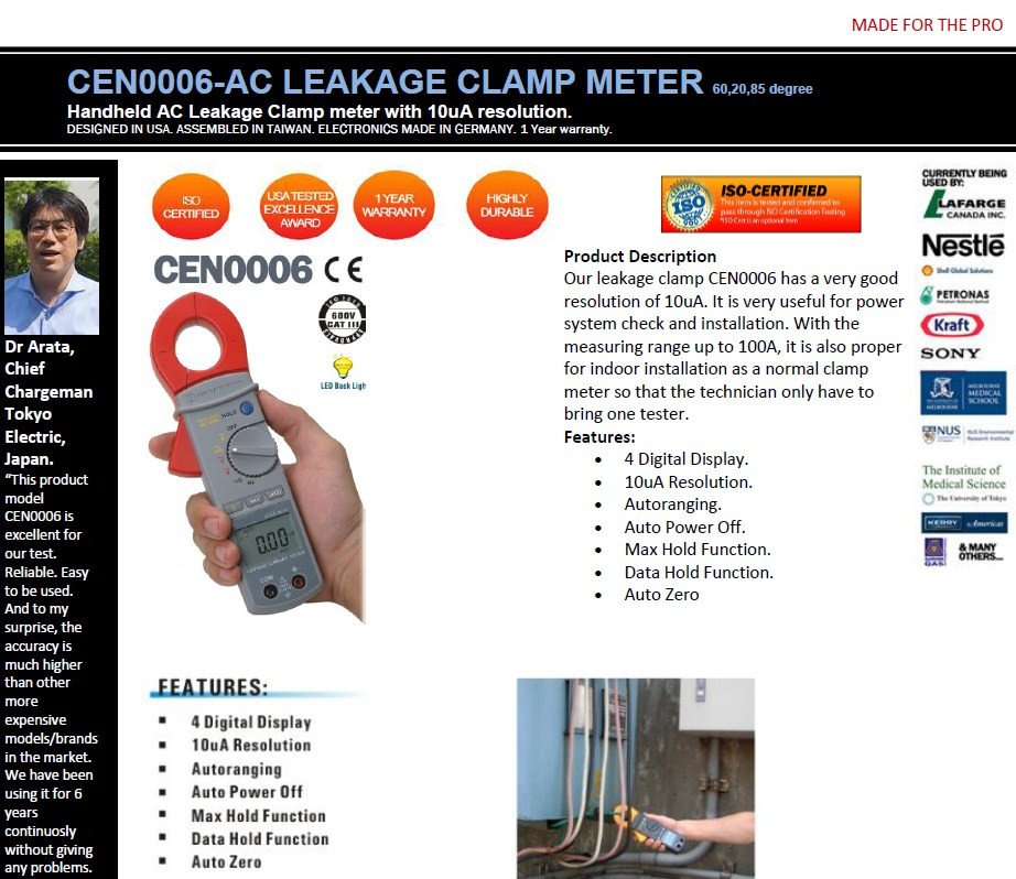 Our leakage clamp has a very good resolution of 10uA. It is very useful for power system check and installation. With the measuring range up to 100A, it is also proper for indoor installation as a normal clamp meter so that the technician only have to bring one tester.